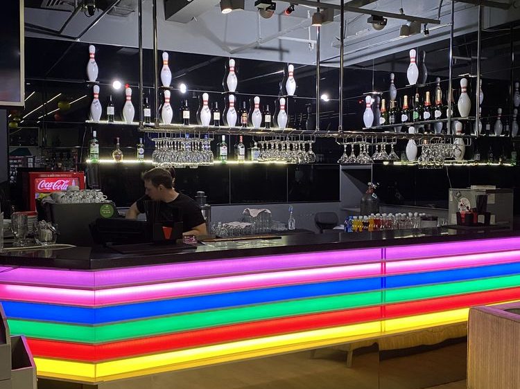 6 дорожек, 3 из которых оснащены детскими бортиками, удобные диваны и… прекрасный БАР с качественной музыкой и блюдами от шеф-повара.