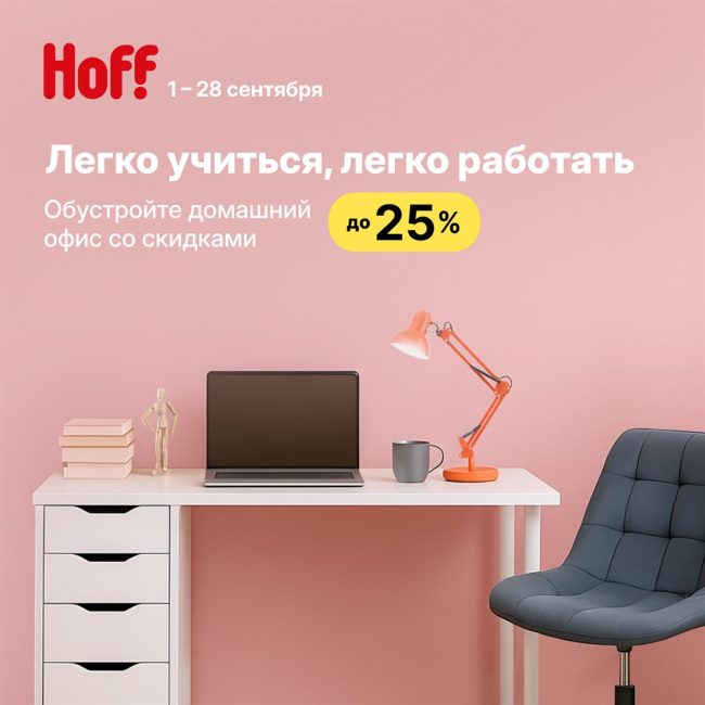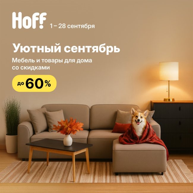 Сентябрь — время для уюта с Hoff Осенью так хочется перезагрузить интерьер и добавить тепла в дом! С 1 по 28 сентября в гипермаркете Hoff скидки до 60% на все, что помогает сделать интерьер стильным и комфортным. Пусть каждый осенний вечер дома будет особенным!